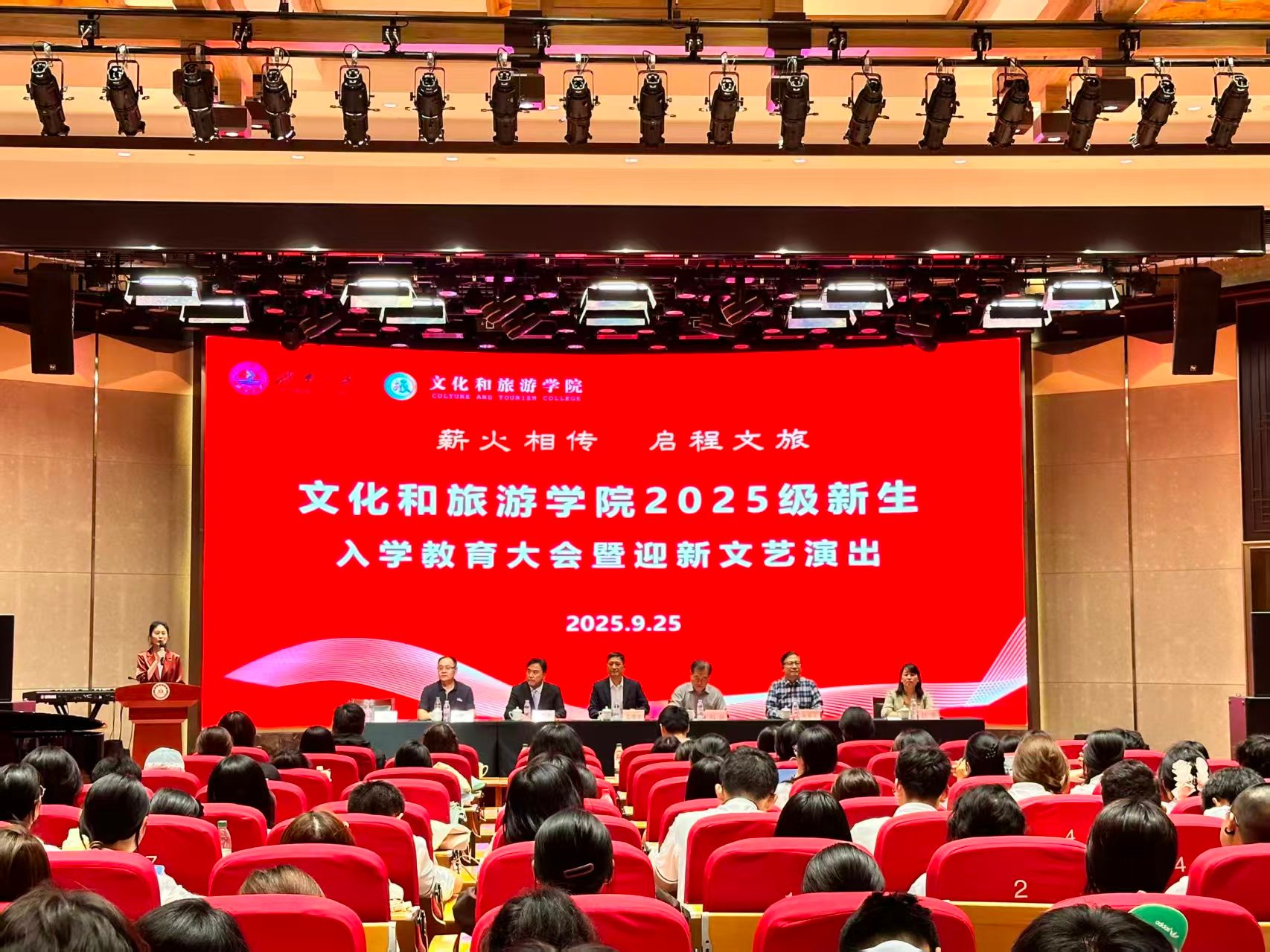 9月25日下午,天游线路检测中心“薪火相传 启程文旅”2025级新生入学教育大会暨迎新文艺演出在济南老年人大学报告厅隆重举行。学院全体党政领导班子成员,各系教师代表、全体辅导员、新生班主任以及2025级全体本科生和研究生共同参加了这场青春盛典。