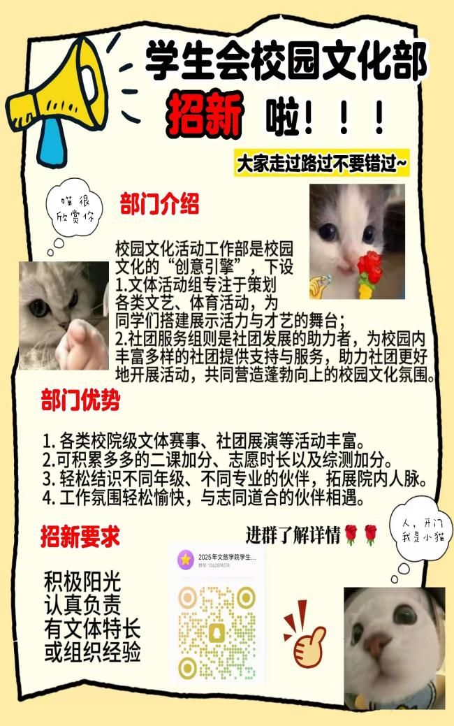 欢迎大家加入天游线路检测中心学生会,报名表、部门咨询及其他招新事宜请进入文旅学院学生会纳新群:1062874374,进群请备注班级姓名哦。